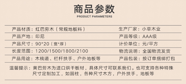 红巴劳木:烘干板材,尺寸20*90*1250/1550/1850/2100/单位毫米