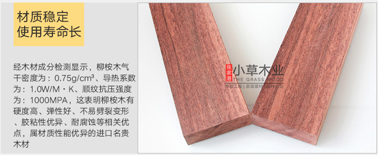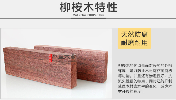 柳桉木差别:白柳桉,常绿乔木,树干高而直,木材结构粗,纹理直或斜面交错,易于干燥和加工,且着钉、油漆、胶合等性能均好;红柳桉,木材结构纹理亦如白柳桉,径切面花纹美丽,但干燥和加工较难。