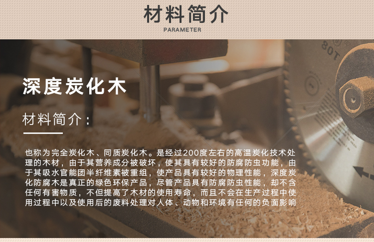 深度炭化木家具的价格也并不贵,和一般家具的差不多。虽然它的外表看起来比较粗糙,但是更加符合贴近自然的风格。不过深度炭化木防腐作用是否会因为切割而受到破坏?这是不用担心的,因为其加工工艺的关系,无论怎样摆弄,它的防腐性能也不会受到影响。