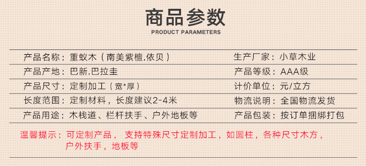 红巴劳木定制